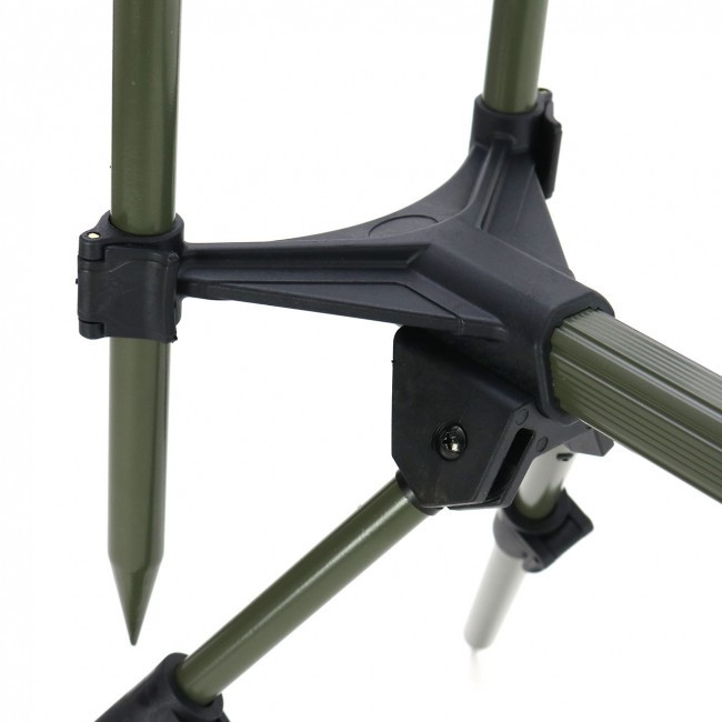 Négy állítható lábának köszönhetően bármilyen terepviszonyokhoz beállítható. A kereszttartó bütykös zárral állítható. Olívzöld, húzott alumíniumból készült.