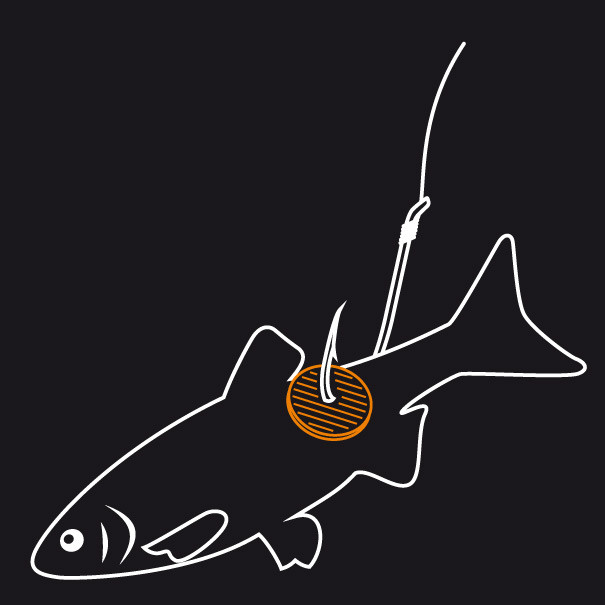 A harcsahorgászat jellemzően speciális kiegészítőket igényel. Ezzel a fekete szilikonkorongal az élő kishalak rögzíthetőek stabilan a horoghoz. Többször is felhasználhatóak.