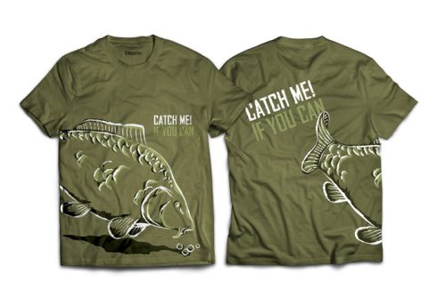 Stílusos póló sorozat, mely megkülönböztet. A CATCH ME IF YOU CAN (fogj meg ha tudsz) felirat ponty képpel, egy nem mindennapi darab az Ön ruhatárába, nem csak horgászatra. A ponty az egész törzs körül a póló alsó részén. A ponty mint skicc vagy festmény minden fontos részlet megjelenítésével. A hal olyan helyzetben van megjelenítve amikor a bojlihoz közelít, amire mindenki vár a vízparton. A póló jó minőségű, ugyanúgy a használt színes nyomtatás. A CATCH ME IF YOU CAN pólóban mindenki tudja kivel van dolga! Nagyon széles választékban kapható az S-es mérettől a 3XL-es méretig.