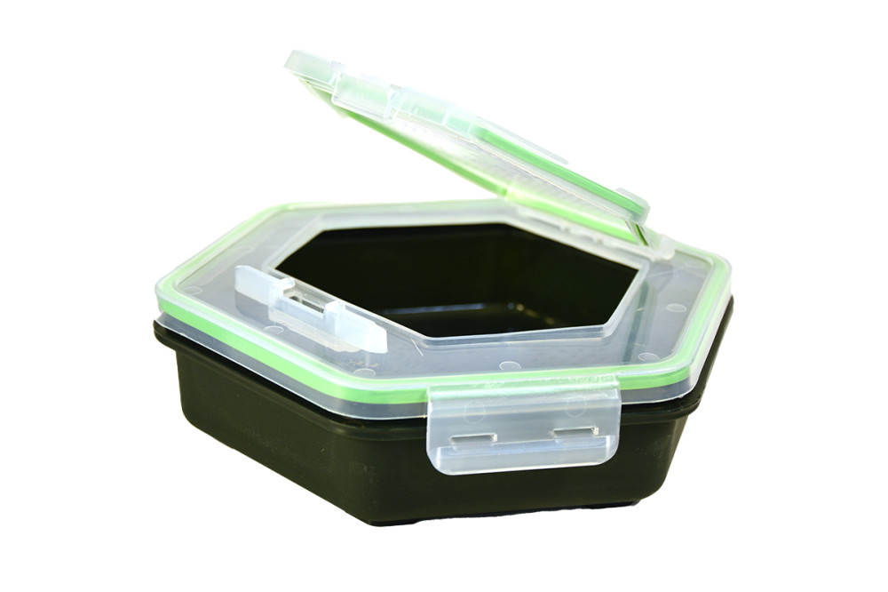 Masszív műanyag csalitároló doboz precízen záródó műanyag fedővel. Apró furatokkal ellátott fedele engedi levegőzni a csalinkat. Kis méretű furatain még a legkisebb pinkik sem tudnak megszökni. A dobozok fedele praktikus felső és oldalsó patentzárakkal van ellátva, mely miatt a praktikussága, akár csalizás során is kiemelkedő.