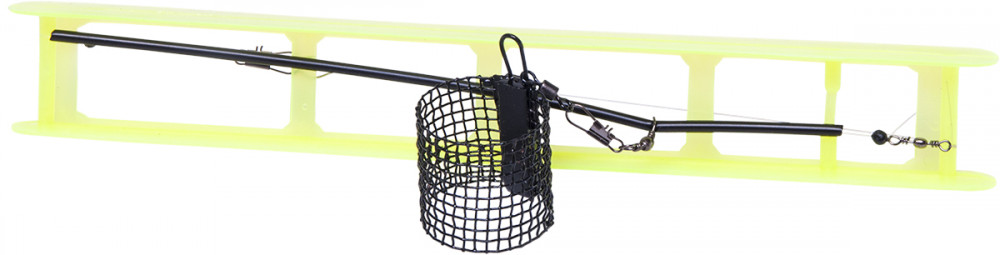 EnergoTeam Feeder szerelék kerek kosárral A készre kötött szerelékek praktikumukkal mindig is kedvelt kiegészítői voltak a horgászoknak, Jelen kivitel egy létrán kínált, kerek feeder kosárral szerelt feederes végszerelék. Csak a főzsinórra kell kötni és mehet is a vízbe a szerelék. A kerek kosarat lassabb folyókra, illetve állóvízi horgászathoz ajánljuk. A tört gubancgátló csőnek köszönhetően a szerelék összeakadásának esélye rendkívül minimális. A monofil zsinóros szerelékek összeállításánál a legfontosabb dolog az összhang. Nem köthetünk túlságosan nagy horgot egy érzékeny szerelékre és nem használhatunk indokolatlanul vastag damilt sem, ha éppen csak egy kis kosárral horgászunk keszegfélékre. Ennél a szereléknél kijelenthetjük: a cél az összehangolt, minőségi végszerelék elkészítése volt, amit el is ért a gyártó. A kosár rácssűrűsége ideális a hazai 2-4 méter mélységű vizek meghorgászásához, az etetőanyagot, a fenékre érésig magában tartja, ami ezután gyorsan ki tud oldódni, kifejtve ezzel maximális csalogató hatását. A szerelék praktikus tároló létrán kerül forgalomba. Tipp: A kosár alját zárjuk le egy kis etetőanyaggal, ezután vágott gilisztát helyezzünk a közepébe, majd legfelülre egy kis löszös agyagot. A bedobás során az agyag minimális csíkot húz a víz középső rétegében, ahonnan a dévérkeszegeket a fenéken található csalihoz csalja, majd az ott lévő felhőben már bátran fognak táplálkozni.