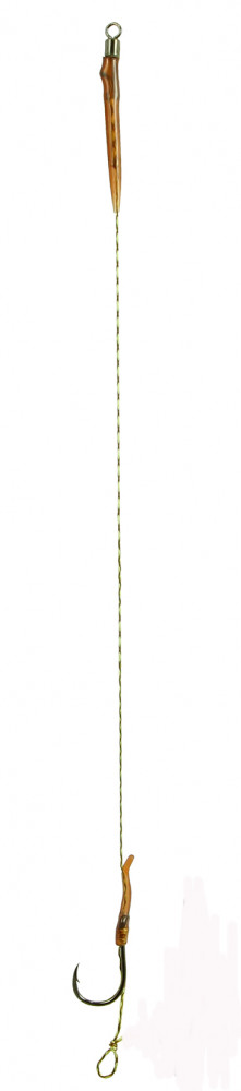 A horoghoz harmonizáló erősségű fonott zsinórra van felkötve, füles hajszálelőkével. Az előkék forgóval és gubancgátló szilikoncsővel vannak szerelve. Így nincs más dolgunk, mint a megfelelő csalit felfűzni és már indulhat is a horgászat!