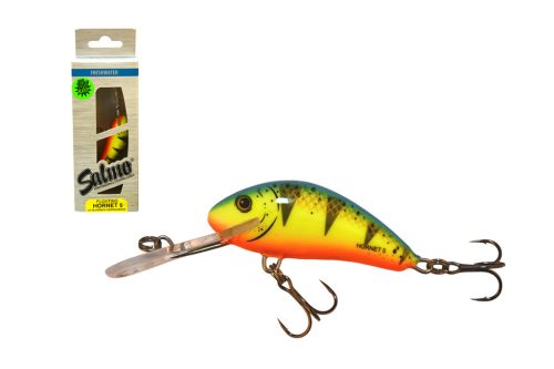 Amióta csak létezik a Salmo család a Hornet típus a legeladottabb, legnépszerűbb változat. Méretét tekintve nem nagy, mégis hihetetlenül eredményesen horgászhatunk vele. Nagyon gondosan készül, komoly precizitás szükséges ahhoz, hogy apró méretben is nagy sebességgel tudjuk vontatni anélkül, hogy kitörjön a számára megszabott útvonalból. Kis súlya ellenére megfelelő felszereléssel jól dobható. Ötféle méretben, háromféle terelőlemezzel, úszó, süllyedő és mélyretörő kivitelben is kapható. Halfajok: pisztráng, sügér, csuka, balin, domolykó Speciális helyek, szituációk: Általánosan talán a legjobban használható típusa a családnak