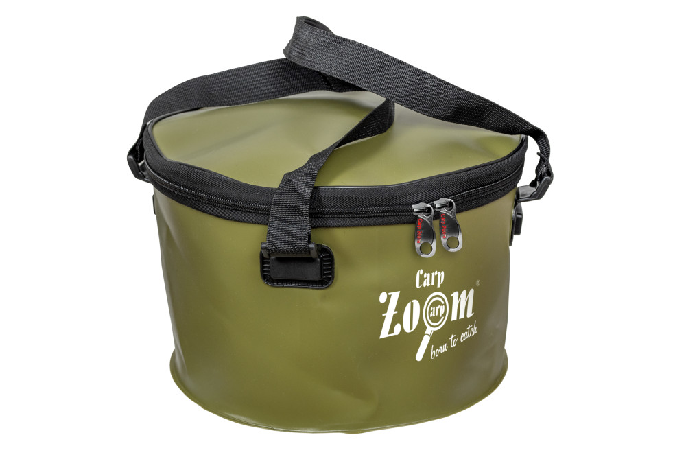 Sokoldalúan felhasználható EVA cipzáros tároló vödör, amely tökéletes alternatívát jelent mind az etetőanyag keverésére, a csali tárolására vagy éppen kézmosásra. Könnyen tisztítható, vízálló EVA anyagból készült. Feeder és method horgászoknak ajánljuk, legyen szó akár hobbi vagy verseny pecáról