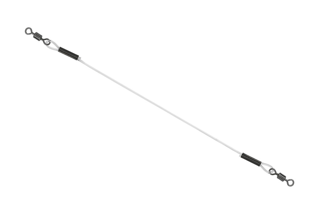 Az átlátszó, 10 centiméter hosszú és 1 milliméter átmérőjű előke mindkét végére forgó került, így gyorsan, könnyedén szerelhető, csökkenti az előke csavarodását.