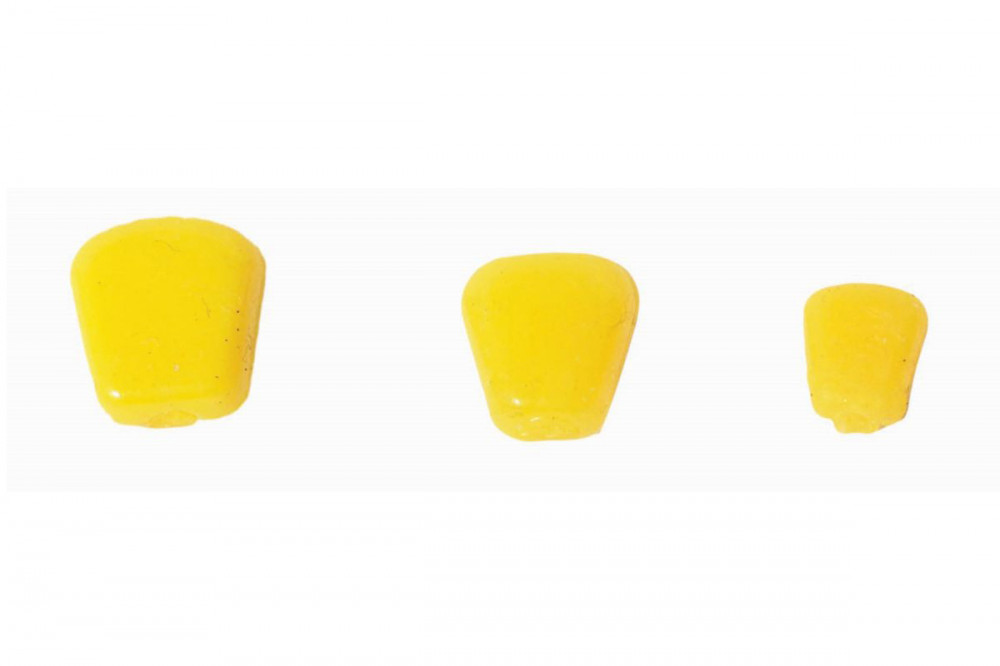 A piacon kapható gumikukoricák többsége kemény és merev, ezért igyekeztünk olyan anyagot keresni, ami hasonlóan jó tulajdonságokkal rendelkezik, de jóval lágyabb. Ez a puha, lágy csali megszólalásig hasonlít a csemegekukoricára. Lágyságának köszönhetően nem csak tüskére és hajszálelőkére, hanem horogra is könnyen felfűzhető. A gumikukorica enyhe lebegő tulajdonsággal rendelkezik, amit egy tüske vagy kisebb forgó már képes lent tartani a fenéken. A csali fogósságának növelése érdekében aromába áztatva kerülnek forgalomba.Mindegyik tégelyben három különböző méretű műkukorica található.