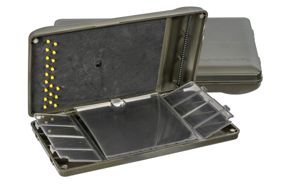 Könyvszerűen kétfelé nyitható előke és aprócikk tároló doboz. Míg az egyik oldalában szivacsos előketartó, addig a másik felében egy nagyobb és nyolc kisebb, zárható fedéllel ellátott aprócikk tároló rész kapott helyet. Mágneses zárral látta el a gyártó.