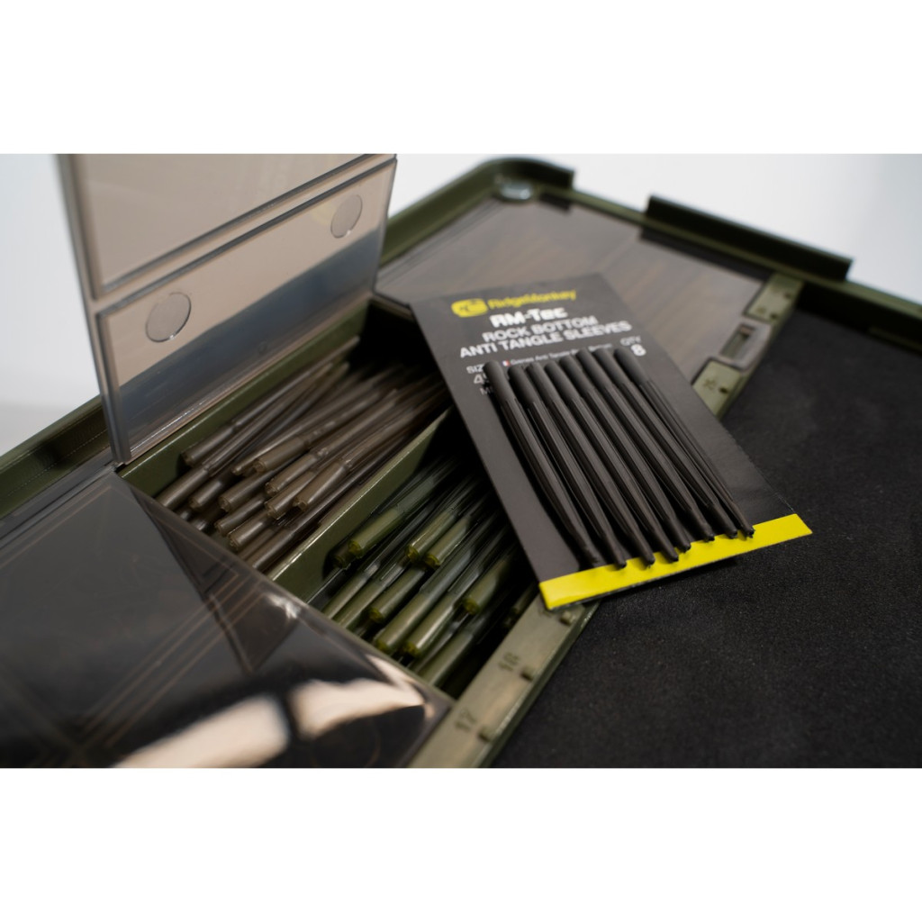 RidgeMonkey Rock Bottom gubancgátlós gumihüvelyA RidgeMonkey Rock Bottom Anti Tangle Sleeves gubancgátló gumihüvely a RidgeMonkey egyik újdonsága.A félmerev gumi anyag egy tungsten bevonatot kapott így elfekteti előkénket az aljzaton. A dobásoknál védi előkénket a gubancolódástól, vízbeérés után pedig védelmet nyújt a kötésünknek.Egy egyedi Eazi-grip bordázatot kapott, így akár vizes kézzel is könnyedén rögzíteni tudjuk.8-as méretű forgóval ideális a használata.Két méretben kapható 25mm és 45mm