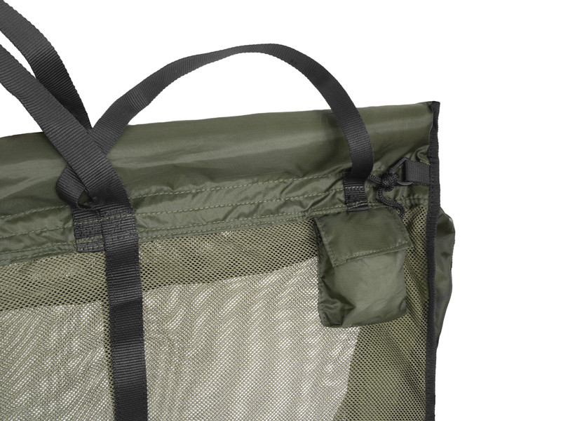 A táska pántjai teljes hosszukban úszókkal vannak ellátva, ami lehetővé teszi a fogás biztonságos vízben való tárolását, például a fotózásra való felkészülés során. A fő rész finom hálóból készült, amely rendkívül kíméletes a halakhoz. A felhasznált anyag lehetővé teszi az összes víz elvezetését a hal felemelése és kezelése során, ez pedig pontos mérlegelést eredményez.