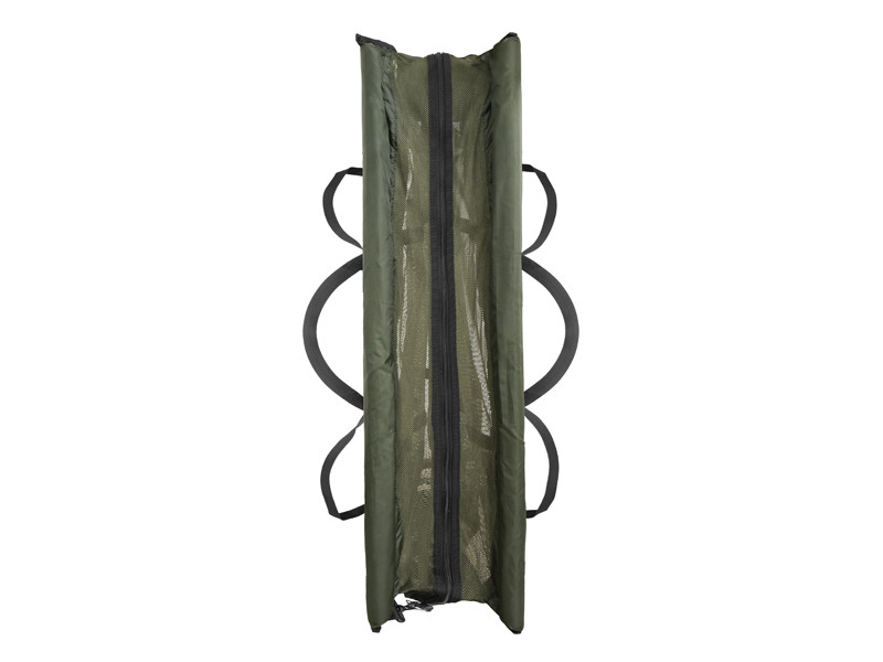 A hálót két fekete textilpánt erősíti meg, amelyek központi fogantyúvá alakulnak át. A hosszú füleknek köszönhetően a táska könnyen mérlegre akasztható. A táska mindkét oldalán textil fogantyúval rendelkezik a könnyű emelés és szállítás érdekében. Erős cipzár található mindkét oldalon és a tetején, így a CWS teljesen kicipzározható a halak könnyebb kezelése érdekében.
