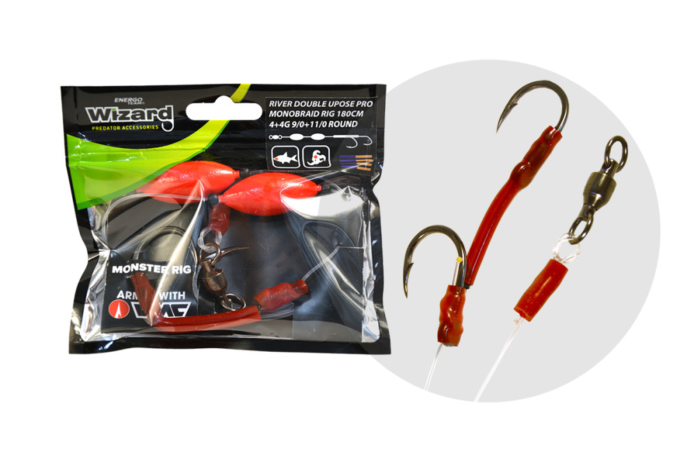WIZARD MONSTER RIVER DOUBLE UPOSE PRO MONOBRAID RIG 4+4G 7/0+9/0 ROUND